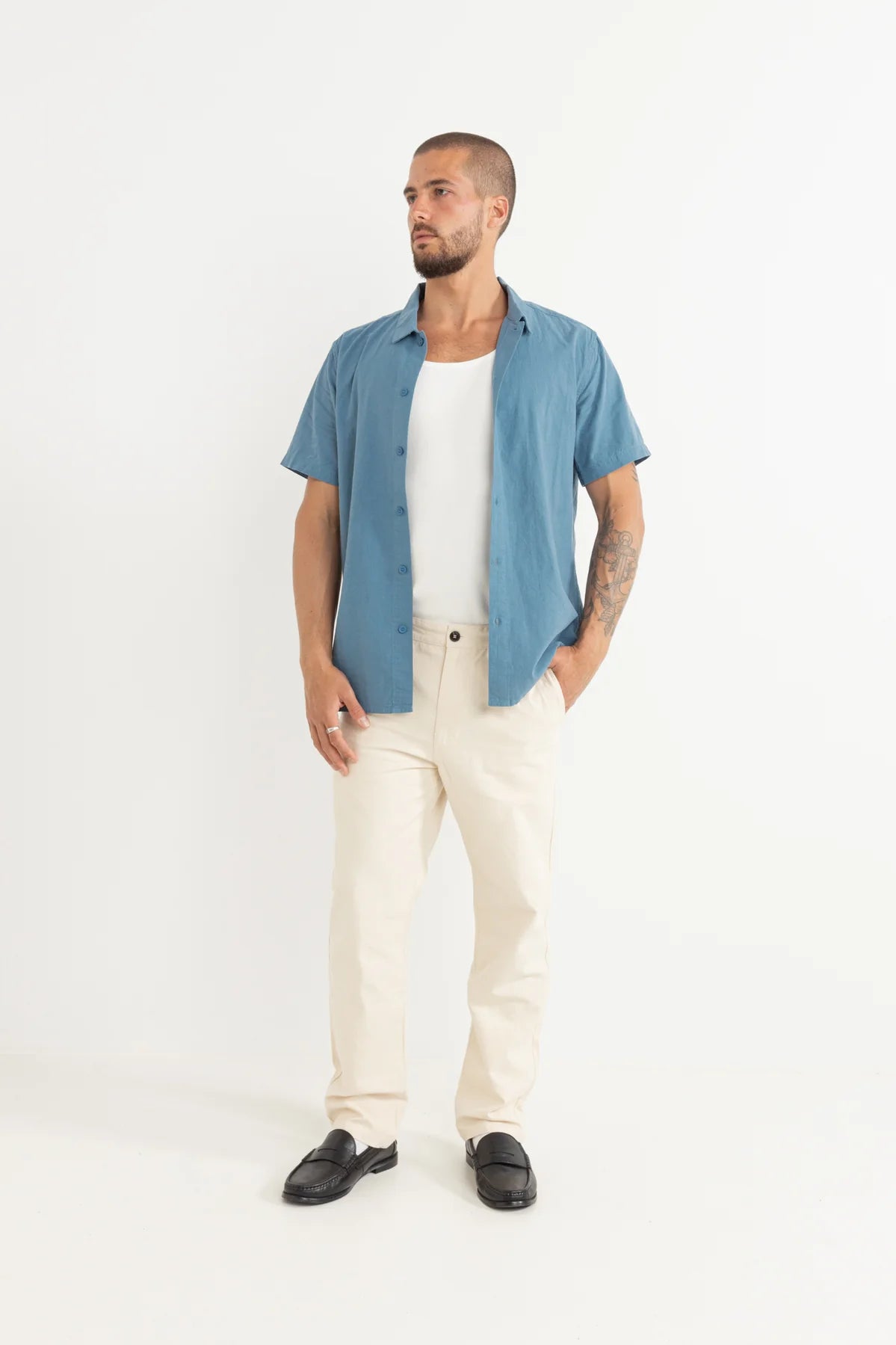 Classic Linen Short Sleeve Shirt - Mineral Blue