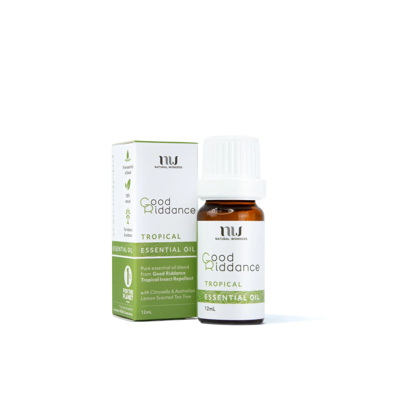 Contains the 100% pure essential oil blend used in the Good Riddance Tropical insect repellent, which includes citronella and Australian Lemon Scented Tea Tree.