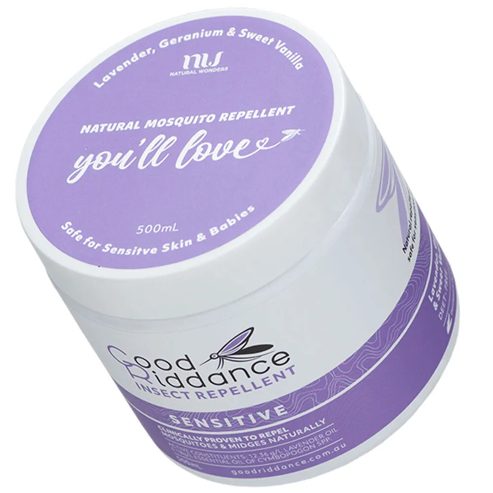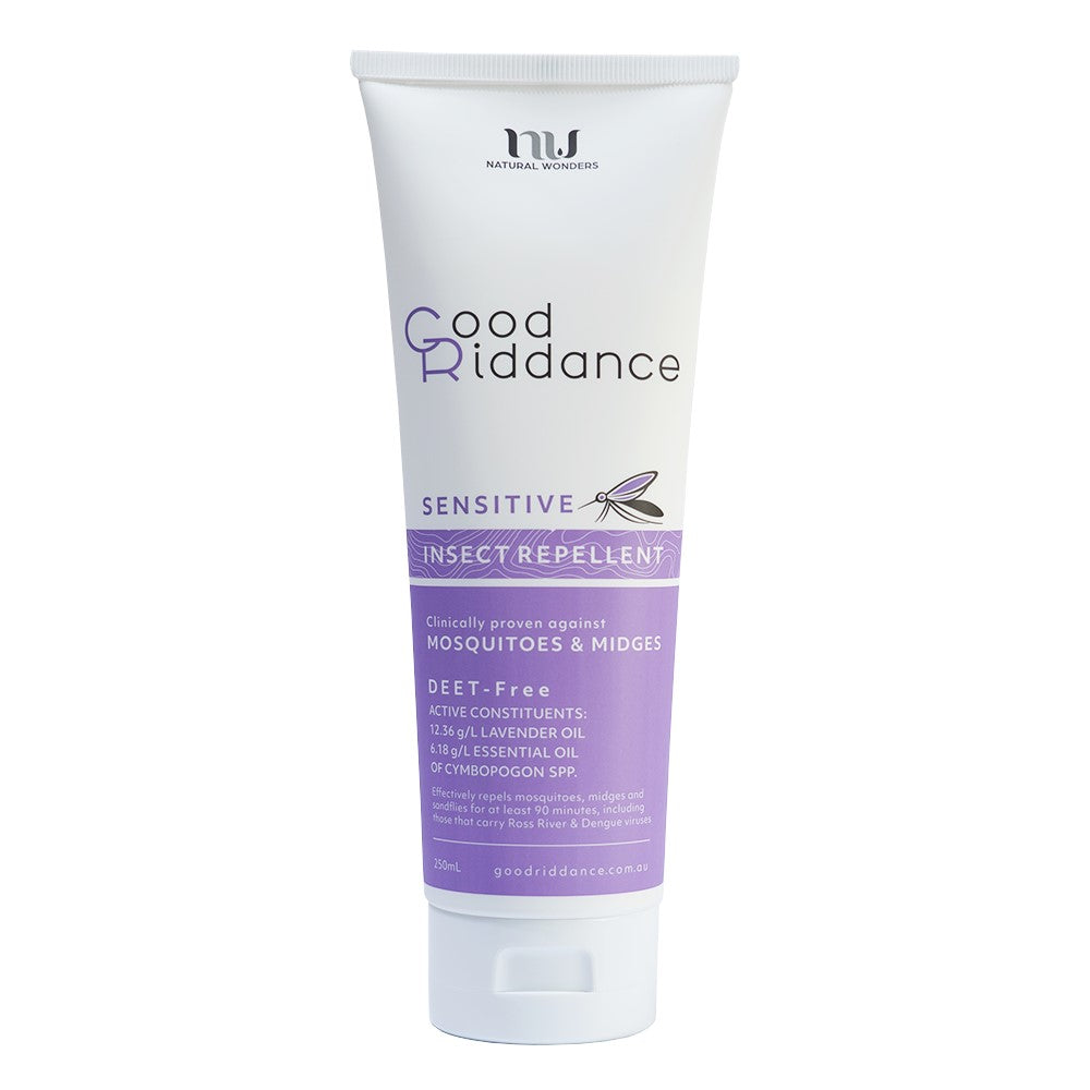 Good Riddance Sensitive Insect Repellent is the only mozzie and midge repellent in Australia suitable for babies over 3 months, during pregnancy and for use on sensitive skin or eczema. It provides clinically proven long lasting natural protection against mosquitoes, midges and sandflies that can carry harmful viruses such as Ross River and Dengue.