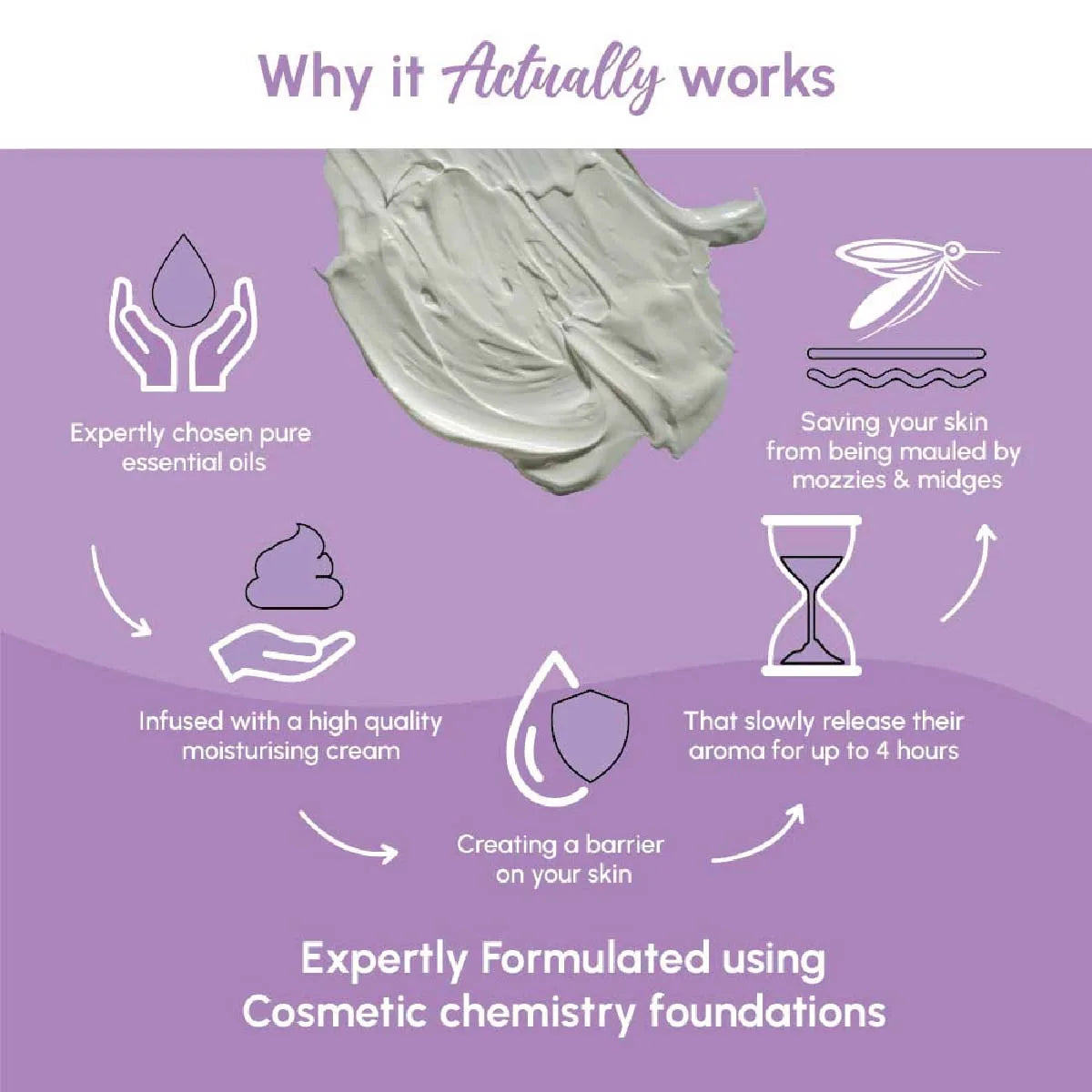 The cream also helps to hold the essential oils on the skin for longer than a spray, reducing the need for reapplication.