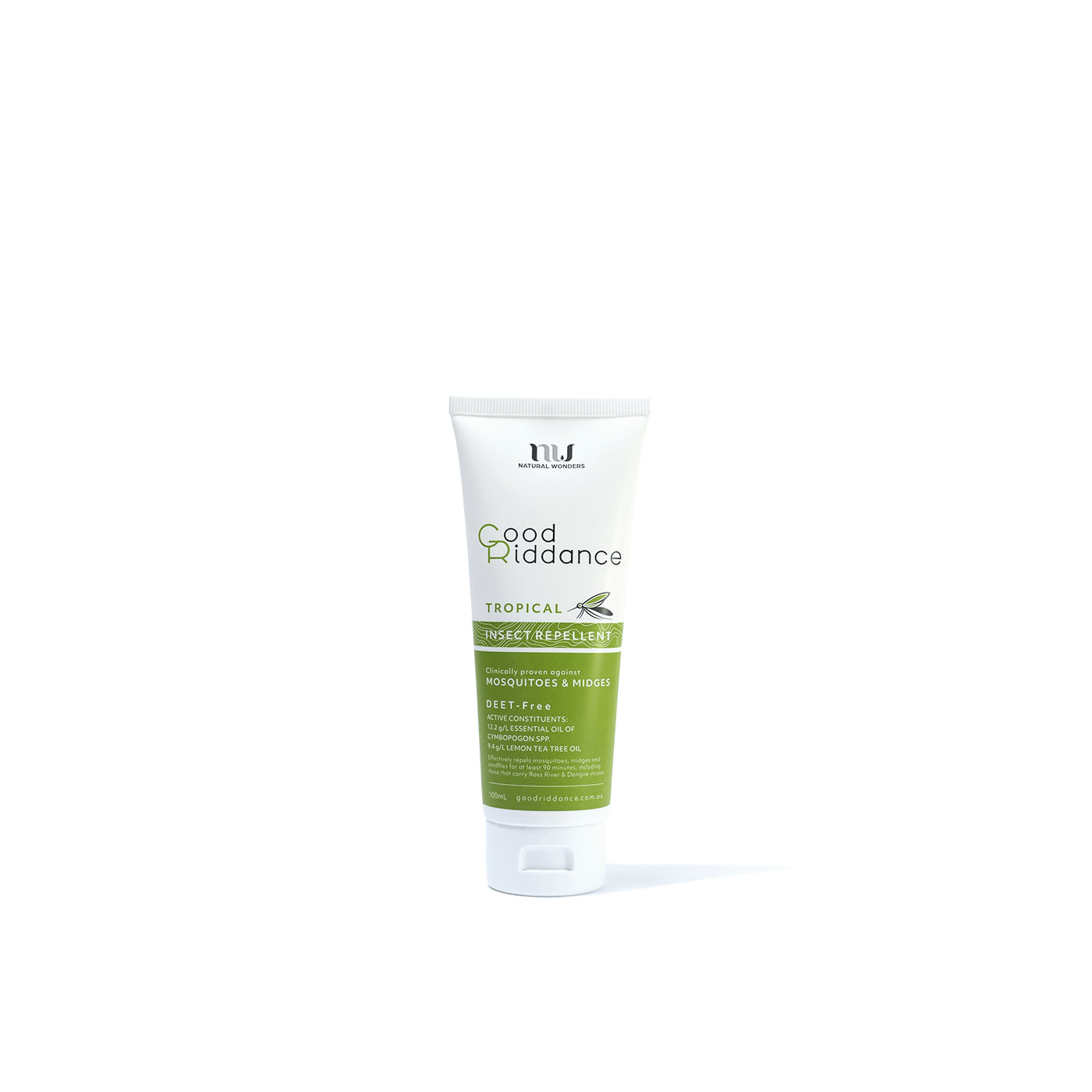 Good Riddance Tropical Insect Repellent is an effective natural bug repellent which provides long-lasting, tropical strength protection against mozzies, midges and sandflies that can carry harmful viruses such as Ross River and Dengue.