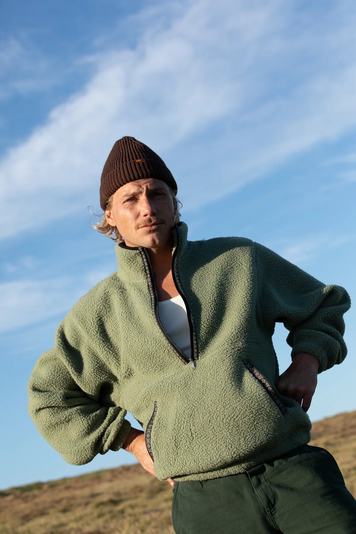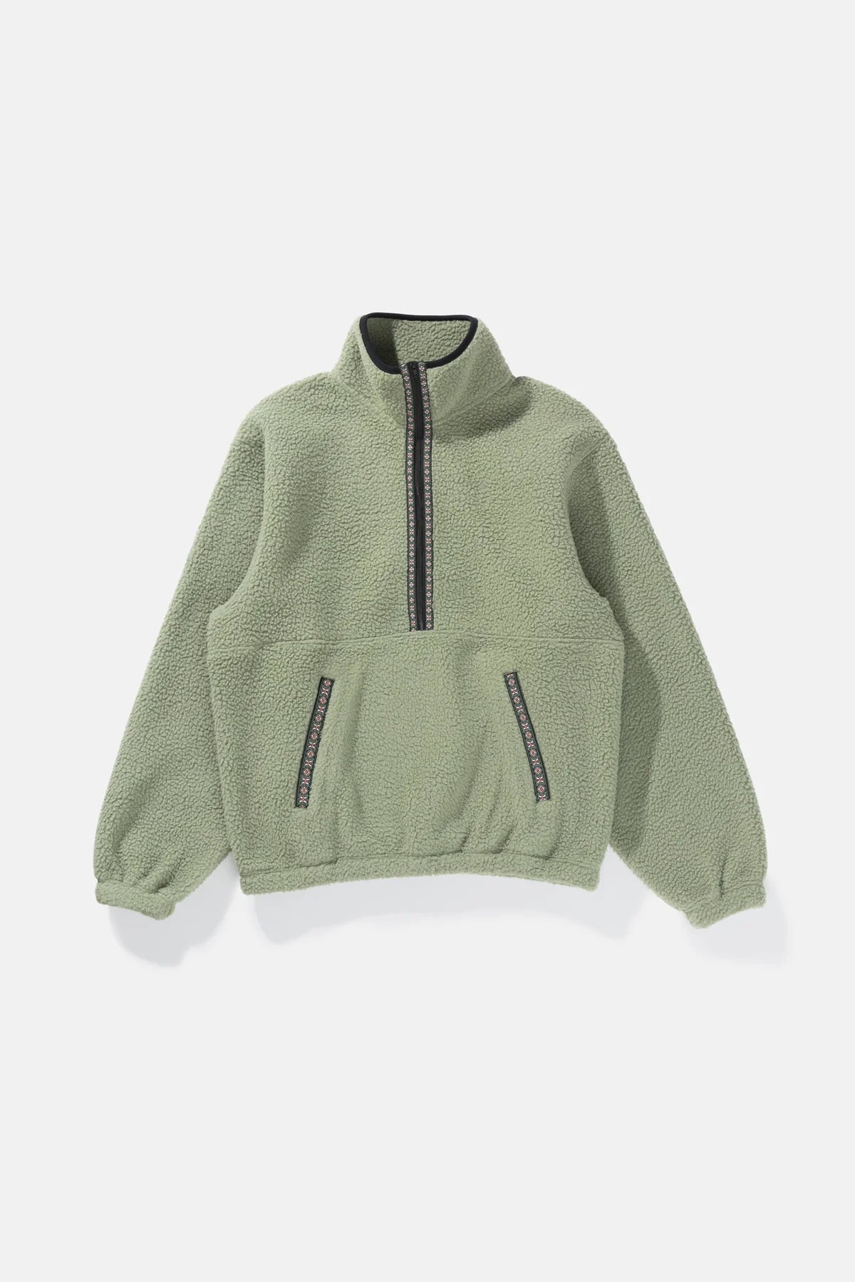 Inspired by the mountain-dwelling communities of Nepal, this Sherpa Pullover comes in an earthly sage, and has been crafted from a premium and heavyweight Polyester. The self-elastic cuff will keep out the elements, while the coil quarter zip allows you to welcome them in.