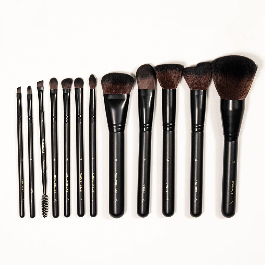 Luxury 12 piece Vegan brush collection in a velvet roll perfect for travel.